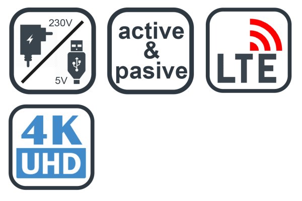 Elegantná izbová anténa pre príjem digitálnej TV s možnosťou otáčania o 360 °. Zosilňovač antény je možné napájať vďaka USB káblu dvoma spôsobmi. Napájanie pomocou adaptéra 220V a ďalej napájanie z USB konektora. Druhý spôsob ocení užívateľ, ktorý chce sledovať TV napr. na NB pomocou USB tunera. Možnosť uchytenia na TV alebo na stenu.