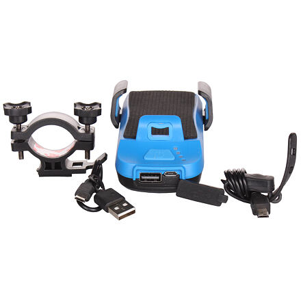 Cyklistický držiak na mobil Merco Expert je multifunkčný doplnok na bicykel, ktorý určite ocení každý cyklista. Držiak Expert totiž slúži aj zároveň ako predné svetlo, húkačka a powerbanka na nabíjanie telefónu počas vašich cyklovýletov. Držiak je vyrobený z vodeodolného ABS plastu (stupeň IPX6) a je vhodný pre telefóny o veľkosti 4 - 6,3 in. Samotný držiak má rozmery 14 x 7 cm, jeho hmotnosť je 0,2 kg. Predné svetlo ponúka 3 režimy svietenia - 2 intenzity stáleho svietenia a režim blikania. Dosvit svetla je >200 m. Súčasťou držiaka je aj výkonná húkačka (130 dB). Treťou najvýznamnejšou funkciou tohto držiaka je powerbanka s kapacitou batérie 4000 mAh, s pomocou ktorej si cez USB kábel ľahko nabijete svoj mobilný telefón. Výdrž batérie je približne 4 hodiny (v závislosti na používaní jednotlivých funkcií), doba nabíjania je 4,5 h. Inštalácia držiaka je veľmi jednoduchá a trvá iba pár minút. S držiakom Expert s predným svetlom a powerbankou budete na ceste maximálne pripravení. Parametre: Materiál: ABS plast Použitie: 4 – 6,3 in 3 režimy osvetlenia Maximálny jas: 550 lm Dosvit: >200 m Indikátor stavu batérie Nabíjanie: USB Kapacita batérie: 4000 mAh Doba použitia: cca 4 h Doba nabíjania: 4,5 h Decibely: 130 dB Vstup: 5V 1A Stupeň krytia: IPX6