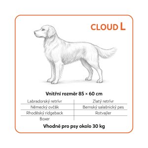 Skutočný odpočinok pre veľké psy s vysokými nárokmi Cloud L je ortopedický pelech pre psov navrhnutý tak, aby poskytol stabilnú oporu, úľavu kĺbom a maximálne pohodlie – každý deň. Dvojvrstvový matrac, kvalitné materiály a funkčné konštrukcie robia z Cloudu ideálne miesto pre spánok aj regeneráciu.
