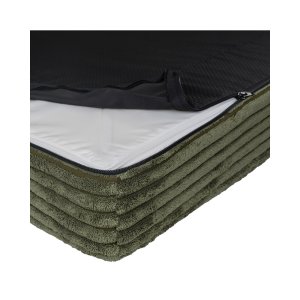 Vodeodolná vnútorná vrstva chráni penové jadro pred vlhkosťou, znečistením alebo drobnými nehodami. Vďaka nej zostáva vnútro pelechu suché a čisté, aj keď pes príde z dažďa alebo má mokré labky. Protišmyková spodná časť zaisťuje stabilitu pelechu na všetkých typoch podláh – nešmýka sa po dlažbe ani plávajúcej podlahe, čo oceníte najmä u starších psov alebo pri divokejších pohyboch.