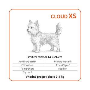 Skutočný odpočinok pre malé psy a šteňatá. Cloud XS je ortopedický pelech pre psov navrhnutý tak, aby poskytol stabilnú oporu, úľavu kĺbom a maximálne pohodlie – každý deň. Dvojvrstvový matrac, kvalitné materiály a funkčné konštrukcie robia z Cloudu ideálne miesto pre spánok aj regeneráciu.