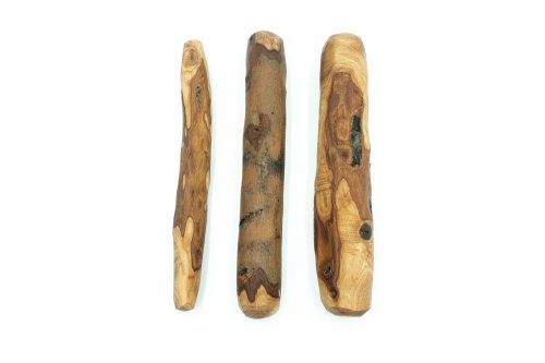 Žuvacie tyčinky z olivového dreva sú k dispozícii v rôznych veľkostiach pre rôzne plemená a hmotnosť psov.