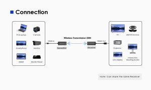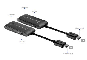 Vysielač tvorí malý dongl. Jednoducho ho zasuniete do HDMI konektora v počítači alebo notebooku. Dongl prijímača pripojíte do HDMI konektora monitora alebo projektora. Obe zariadenia napájate pomocou USB kábla . Extender funguje aj bez externého USB napájania, ale hrozí, že dôjde k výpadkom obrazu alebo k zhoršeniu zvuku.