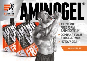 Aminogel je unikátny aminokyselinový produkt, ktorý v jednom balení chutného gélu obsahuje veľmi silnú dávku 11 030 mg výhradne voľných aminokyselín. Gélová forma zaisťuje ideálnu stráviteľnosť a vstrebateľnosť a starostlivo vyvážený pomer voľných aminokyselín pre maximálny anabolický, regeneračný a antikatabolický účinok. Žiadne spojivá ako v tabletách, žiadne zlisované proteíny, tento produkt obsahuje výhradne tie najkvalitnejšie voľné aminokyseliny vo forme gélu, a to v štyroch skvelých príchutiach. Pre koho je Aminogel určený? Aminogel je vďaka svojmu unikátnemu obsahu 11 030 mg voľných aminokyselín určený predovšetkým pre všetkých silových športovcov, ktorí sa usilujú o rast svalovej hmoty a sily (anabolický účinok), a tiež pre všetkých športovcov silovo-vytrvalostných a vytrvalostných disciplín, ktorí chcú ochrániť svalovú hmotu tréningoch alebo pri redukcii podkožného tuku (antikatabolický účinok). Tento produkt preferujú športovci, ktorí chcú doplniť všetky voľné aminokyseliny potrebné pre rýchlu regeneráciu v rýchlo vstrebateľnej, chutnej a kompaktnej forme. Aké sú výhody gélovej formy aminokyselín? Gélová forma aminokyselín zaisťuje rýchlu a maximálnu stráviteľnosť a vstrebateľnosť, čo je pre anabolický a antikatabolický účinok aminokyselín zásadný. Žiadne spojivá ako v aminokyselinových tabletách, žiadny zlisovaný proteínový prášok – iba voľné aminokyseliny vo veľmi silnej dávke 11 030 mg v balení. Gélová forma je v neposlednom rade tiež veľmi praktická. Nosíte so sebou celý deň tablety komplexných aminokyselín, BCAA a prášok glutamínu kvôli suplementácii cez deň a okolo tréningu? Nie je práve pre Vás vhodnejšia kompaktná gélová forma produktu, ktorá v jednom balení obsahuje všetky potrebné aminokyseliny? Vrecko môžete mať celý deň pri sebe, brať si ho na tréning, na športoviská, na cesty a dovolenky, na preteky a na zápasy. Nepotrebujete nosiť žiadne veľké balenia ani hľadať zdroj pitnej vody alebo niečo odmeriavať. Vďaka produktu Aminogel máte pri sebe vždy presne odmeranú porciu všetkých voľných aminokyselín v skvele vyváženom pomere. Odporúčané dávkovanie: