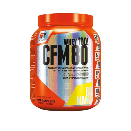 najkvalitnejší zdroj bielkovín – natívny CFM instantný srvátkový koncentrát vyrobený v Európskej únii proteín je spracovaný najšetrnejšou metódou za studena na keramických mikrofiltroch zachované všetky dôležité bielkovinové frakcie (žiadne ničenie bielkoviny chémií alebo ióny) pridaných 7 silných tráviacich encí obsiahnutých živín sladený kombináciou overenej sukralózy a steviol-glykozidov prírodného pôvodu z rastliny stévie ovocné príchute obsahujú rozomleté kúsočky 100% ovocia pre ešte lepšiu chuť plná krémovitosť a lahodná konzistencia používa iba a len prírodné farbivá, žiadna syntetika úplne excelentných CFM proteínu 100% instantný – úplne dokonale rozpustený za niekoľko sekúnd špičková stráviteľnosť a využiteľnosť bielkovín úplne bezprašný – jemne nadýchaná konzistencia určený pre nárast kvalitnej svalovej hmoty vďaka skvelým nutričným hodnotám vhodný aj do diéty dóza je zatavená v celoplošnom zľave až po tvoju náladu proteín otvoril pod viečkom indukčne zatavená zátka na zamedzenie vstupu vzduchu do produktu Obrovským benefitom je zachovanie všetkých bielkovinových frakcií (pozrite sa v zložení nižšie na podrobný rozpis). Navyše sme pridali komplex siedmich enzýmov na dokonalé strávenie proteínu a zabudovanie bielkovín do svalovej hmoty. Jedná sa o enzýmy papaín, alfa-amyláza, bromelaín, laktáza, celuláza, neutrálna proteáza a lipáza. Kombinácia sukralózy a sladidla prírodného pôvodu z rastliny stévie vytvára dokonale vyváženú sladkú chuť! CFM Instant Whey 80 Vám ponúkame v 13 vynikajúcich príchutiach. V ovocných variantoch je obsiahnuté pravé, sušené ovocie (teda žiadna chémia) a na chuti je to obrovsky poznať! Trúfame si tvrdiť, že proteín CFM Instant Whey 80 chutí najlepšie zo všetkých. Chuť je plná, výrazná a nápoj nádherne krémový. Obsah proteínu je pre tento typ produktu nadštandardných 75%! Okrem skvelého zloženia je tento výrobok obľúbený vďaka jednoduchej a bezproblémovej príprave – je výborne rozpustný, nepráši a netvorí hrudky. O použitom natívnom CFM proteíne: CFM je prírodný, nechemický proces výroby srvátkového proteínu najvyššej kvality, filtrovaného na špeciálnom, technologicky vyspelom keramickom cross-flow filtri, ktorý je schopný vo vysokej miere odfiltrovať všetky nežiaduce zložky (ako je tuk, laktóza…) a izolovať čistú (pán) cenných mikrofrakcií, ako je beta-laktoglobulín, alfa-laktalbumín, sérový albumín, imunoglobulín, glykomakropeptídy a laktoferín. To všetko bez použitia chemikálií alebo rozpúšťadiel. CFM je najšetrnejšia existujúca metóda výroby bielkovín, pretože surovina nie je vystavená žiadnym znehodnocujúcim postupom, napr. vysokému tlaku, teplote, iónom či hydroxidom. Iba samovoľne prechádza svojou vlastnou váhou cez keramické filtre. Vďaka tomu je finálny srvátkový proteín intaktný = nedotknutý ničím a nikým = tzv. panenský proteín (virgin proteín). Jeho štruktúra, zloženie bielkovín, vôňa, farba a chuť je prirodzená, ničím neovplyvnená a nezmenená, zostáva v pôvodnej, tzv. natívnej podobe.