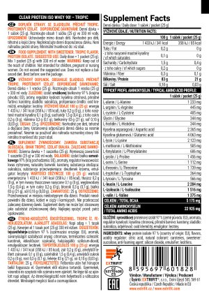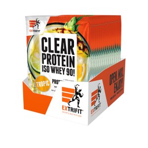 Balenie obsahuje 16 ks. Revolúcia v tvojom šejkri Že na klasiku nič nemá? Omyl. Už po prvom napití pochopíš, že Clear Protein Iso Whey 90! je chýbajúcou zbraňou v tvojom proteínovom arzenáli. Nakŕmiš svaly najkvalitnejšími bielkovinami a zároveň sa skvele osviežiš. A z čoho ti zaručene spadne opasok? 97% srvátkového izolátu, 0 g cukrov, 0 g tukov! Prečo si obľúbiš Clear od Extrifitu®: