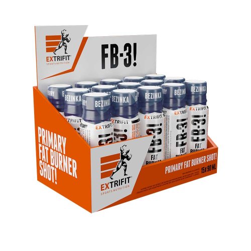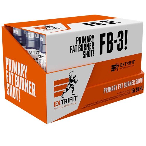 ! Obsahuje kofeín, nie je vhodné pre deti a tehotné ženy. Denná dávka (1 fľaštička) obsahuje 200 mg kofeínu. Produkt nie je vhodný pre osoby trpiace precitlivenosťou na kofeín. Produkt FB-3! Extrifit je spaľovač tuku určený pre všetkých, ktorí hľadajú suplement účinný v metabolizme tukov, ktorý zároveň podporí ich tréningový výkon. 3 úplne základné zložky pre spaľovanie! Synefrín v maximálnej legálnej dávke, 2000 mg karnitínu a vysoká dávka kofeínu 200 mg! Najlepšie, overené účinné látky, to je krédo tohto produktu! Sú produkty, ktoré potrebujete mať pri svojich každodenných aktivitách so sebou, aby ste si ich mohli dať presne v daný čas, typicky pred tréningom, kedy je presné načasovanie použitia produktu absolútne zásadné pre ich efekt. To sa týka aj spaľovačov tuku a predtréningových produktov. Zvlášť keď musíte na tréning cestovať, v taške máte veľa iných vecí a vláčiť so sebou ešte veľké balenie suplementov, odsypávať z nich potrebné množstvo, riediť nápoj… to všetko je zbytočné, keď môžete mať so sebou jednorazové praktické balenie, a to ešte v tekutej forme s rýchlou a výbornou stráviteľnosťou a vstrebaním! 15 minút pred tréningom vypi FB-3! A choď na to! Účinné látky produktu FB-3 !: