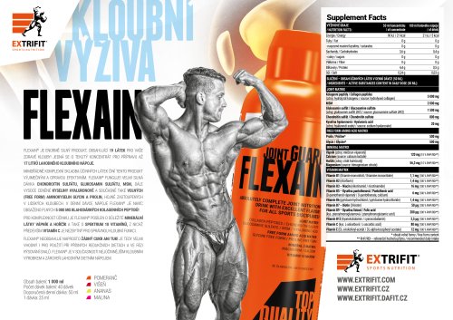 V Extrifite sme nechceli to, čo predáva každý. Žiadne sypané prášiace zmesi nevalnej chuti, žiadne hrubé tablety plné spojiva. Produkt musel byť unikátny a dokonalý vo všetkých smeroch. A to sa podarilo! Máte od tejto chvíle k dispozícii úplne nový kĺbový produkt Flexain®, určený pre všetkých kondičných i vrcholových športovcov a súčasne aj pre športujúcich či nešportujúcich verejnosť. Flexain® ocenia kulturisti, cyklisti, trojbojári, futbalisti, strongmani… jednoducho všetci športovci, ktorí pravidelne preťažujú svoje kĺby. Výrobok ale poteší aj Vašich rodičov či babičku. Kĺbovú výživu skrátka ocení každý. Ale skutočnú kĺbovú výživu, akou je Flexain®. Produkt neobsahuje žiadny cukor ani žiadny tuk! Unikátnosť produktu Flexain®: