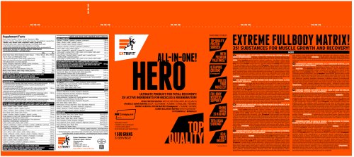 vitamín B1 - 1,2 mg/100 g (111% RHP) - prispieva k normálnemu energetickému metabolizmu, prispieva k normálnemu energetickému metabolizmu, k normálnej činnosti nervovej sústavy, k činnosti srdca ak normálnej psychickej činnosti. únavy a vyčerpanie ak ochrane buniek pred oxidatívnym stresom vitamín B3 - 17,8 mg/100 g (111% RHP) - prispieva k normálnemu energetickému metabolizmu, k normálnej činnosti nervovej sústavy, k zníženiu miery únavy a vyčerpania ak normálnej psychickej činnosti vita0 B - prispieva k normálnemu energetickému metabolizmu, k normálnej syntéze metabolizmu steroidných hormónov, vitamínu D a niektorých neurotransmiterov, prispieva k zníženiu miery únavy a vyčerpania ak normálnej mentálnej činnosti vitamín B6 - 1,6 mg/100 g (111% RHPI) - prispieva bielkovín a glykogénu, k normálnej činnosti nervovej sústavy, k regulácii hormonálnej aktivity, prispieva k normálnej funkcii imunitného systému, k zníženiu miery únavy a vyčerpania ak normálnej psychickej činnosti biotín - 0,06 mg/100 g (111% RHP) - prispieva k normálnemu energetickému metabolizmu, k normálnemu energetickému metabolizmu makroživín a na normálnu psychickú činnosť kyselina listová - 0,22 mg/100 g (111% RHP) - prispieva k normálnej syntéze aminokyselín, k normálnej krvotvorbe, k normálnej funkcii imunitného systému, k zníženiu miery únavy a vyčerpania ak normálnej psychickej činnosti vitamín B12 - 1/0,0 prispieva k normálnemu energetickému metabolizmu, k normálnej činnosti nervovej sústavy, k normálnej psychickej činnosti, k normálnej funkcii imunitného systému ak zníženiu miery únavy a vyčerpaniu vitamínu C ciev, chrupaviek a kostí, prispieva k normálnemu energetickému metabolizmu, k normálnej činnosti nervovej sústavy, k normálnej psychickej činnosti, k normálnej funkcii imunitného systému, k ochrane buniek pred oxidatívnym stresom ak zníženiu miery únavy a vyčerpania vitamín E - 1s oxidatívnym stresom Vďaka obsahu proteínov prispieva Hero k rastu sily a svalovej hmoty ak jej udržaniu v situáciách, kedy je ohrozená katabolizáciou, ako je napríklad veľmi intenzívny či dlhotrvajúci tréning. Hero je skvelou investíciou! 37 všetkých účinných látok, nutných pre doplnenie po tréningu, neponúka žiadny iný produkt! Nie je potrebné nakupovať jednotlivé potréningové suplementy každý zvlášť! Extrifit Vám ponúka Hero vo viacerých výborných príchutiach. Pripravený nápoj má krémovú konzistenciu a skvelú chuť.