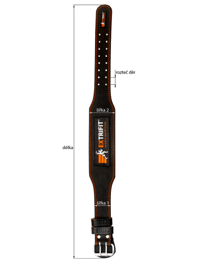 Zadná časť vypolstrovaná, rozšírená, robustná spona pre dvojité dierovanie. Pevné dvojité prešitie kontrastnou oranžovou niťou. Na rozšírenej chrbtovej časti aj na zúženom konci pevne všité masívne gumové logá Extrifit, umývateľné as jednoduchou údržbou. Dve pútka na prevlečenie voľnej časti pásky (s výliskom Extrifit) - jedno pevné a jedno pohyblivé. Ak si nie ste istí správnou veľkosťou, pomôcť Vám môže zoznam rozmerov jednotlivých opaskov, ktorý nájdete nižšie. Pokiaľ by ste si napriek tomu omylom objednali opasok, ktorého rozmer by Vám nevyhovoval, nie je absolútne žiadnym problémom Vám ho obratom vymeniť za veľkosť inú! Akú veľkosť zvoliť?