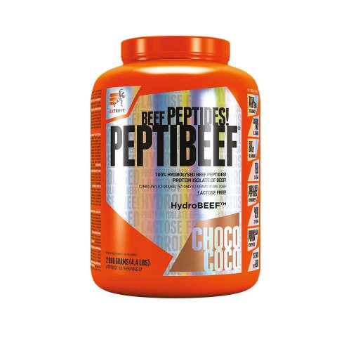 Základom produktu je špeciálne zložený PEPTIBEEF MATRIX včele so značkovým hydrolyzovaným hovädzím izolátom HydroBEEF™, obsahujúci neuveriteľných 97% bielkovín. Pridané sú navyše tráviace enzýmy bromelain a papaín pre ideálne využitie bielkovín a ich zabudovanie do svalovej hmoty. PeptiBeef® sa pýši obsahom pravého kakaa a sladkú chuť tvorí overená kombinácia sukralózy a sladidla prírodného pôvodu z rastliny stévie. Príjem PeptiBeef® prispieva k rastu svalovej hmoty ak jej udržaniu v situáciách, kedy je ohrozená katabolizáciou. Minimálny obsah tuku robí z produktu ideálneho pomocníka aj v tej najprísnejšej diéte! Ako správne pripraviť hydrolyzovaný proteínový izolát PeptiBeef®? Pri šejkrovaní produktu PeptiBeef® vzniká typická šejkovitá konzistencia s hustou penou. Hovädzí proteínový izolát sa chová inak ako instantný srvátkový proteín a na prípravu nápoja odporúčame viac šejkrovať, až sa proteínový prášok rozpustí a vytvorí krém s veľmi príjemnou konzistenciou. Ako prebieha technologický proces sprejového sušenia pri výrobe hovädzieho proteínového izolátu? Tento proces prebieha za presne stanovenej stabilnej teploty a vlhkosti, ktorá je udržovaná vysoko výkonným a špeciálnym odvlhčovačom vzduchu. Po prechode tryskami, ktoré vytvárajú sprejový efekt vo fluidnej a rozprachovej sušiarni za pomoci silnej odstredivej sily, je potom proteínový vývar zbavený vody. Vzniká tak suchý, nelepivý prášok, ktorý sa nazýva sprejovo sušený vývar. Aké sú nutričné hodnoty sprejovo sušeného hovädzieho izolátu v rade BEEF Extrifit? Tento čisto prírodný hydrolyzovaný proteínový izolát má zachované všetky hodnotné látky. Finálna surovina v suplemente obsahuje 97% bielkovín, iba 1,9% tuku a 0% cukrov. Ide tak o ideálny zdroj bielkovín v kulturistike a fitness, kedy jeho suplementáciou získavate naštiepené izolované bielkoviny na rast svalovej hmoty, a pritom nekonzumujete takmer žiadny tuk. Základné vlastnosti produktu: