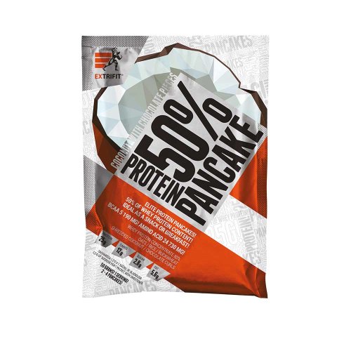 obsah bielkovín 50%! whey proteín 80% - výhradný a najkvalitnejší zdroj bielkovín - vypĺňa celú polovicu každého vrecka 5200 mg BCAA v každom sáčku iba 2 - 3 g jednoduchých sacharidov v celom sáčku balené v jednotlivých sáčkoch 1 sáčok = 1 dávka = 25 g bielkovín všetko odmera – žiadne váženie pravé sušené a lyofilizované ovocie a vysoko kvalitná čokoláda s iba 1,2 g cukru v celom sáčku veľmi lahodná a diétne raňajky či desiata sacharidová zložka zo špičkových zdrojov: ovos + ryža + pohánka úplne jednoduchá príprava vďaka dávke v jednorazovom sáčku žiadne veľké drahé dózy s jedinou príchuťou, ktorá sa Vám za chvíľu prajú teraz môžete mať každý deň inú príchuť proteínovej palacinky doslova za pár korún Extrifit® prichádza s úplne novým radom produktov. Jedná sa o špeciálne produkty určené na prípravu dokonale chutných a zároveň výživovo super hodnotných jedál, ktorých receptúry sú zostavené aj pre tých najnáročnejších športovcov. Jednou z týchto noviniek sú aj palacinky, ktoré Vám ponúkame v dvoch variantoch, jednak proteínovo-sacharidové palacinky s obsahom bielkovín 20%, jednak proteínové palacinky s obsahom bielkovín 50%.