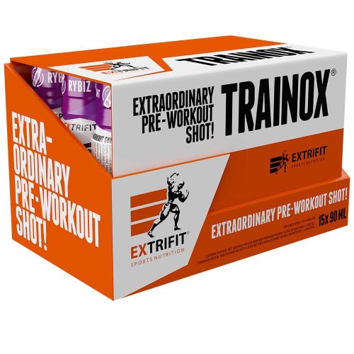 ! Obsahuje kofeín, nie je vhodné pre deti a tehotné ženy. Denná dávka (1 shot) obsahuje 310 mg kofeínu. Produkt nie je vhodný pre osoby trpiace precitlivenosťou na kofeín. TRAINOX® je doplnok stravy určený pre totálnu maximalizáciu tréningovej intenzity. Jedná sa o multikomponentný produkt obsahujúci úplne novú a brutálne silnú zmes účinných látok určených na predtréningové použitie. Poznáte AGREZZ®? Európsky hit a bestseller medzi pre-workouty? Máte ho v obľube? Tak TRAINOX® si zamilujete tiež. Ešte silnejšie zloženie a vďaka jednorazovým shotom pripravené rovno na konzumáciu! Tekutá forma produktu navyše zaisťuje rýchlu a výbornú vstrebateľnosť.