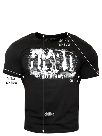 čierna/biela - čierne tričko a biela potlač Rozmery: Oblasti merania zaznačené na pripojenom ilustračnom obrázku (uvedené miery sú orientačné, môžu sa nadrobno líšiť). veľkosť M