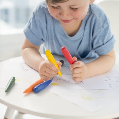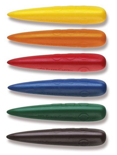 Plastové pastelky s ergonomickou oblasťou úchopu do dlane. Súprava obsahuje šesť farebných pasteliek (žltú, oranžovú, červenú, zelenú, modrú a hnedú).
