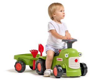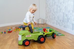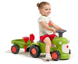 nakladač, vlečka, bager, klaksón na volante. Rozmery: Dĺžka 229 cm, Výška 79 cm, Šírka 60 cm, Nosnosť 50kg, Váha 20kg, Pre deti od 3 do 7 rokov