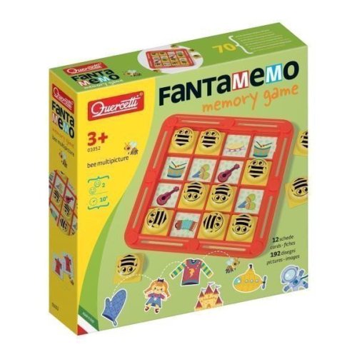 Zábavná hra na precvičenie pamäte na princípe pexesa pre deti aj celú rodinu. Fantamemo obsahuje 12 ilustrovaných výmenných kariet a 192 originálnych kresieb na precvičenie vizuálnej pamäte a schopnosti koncentrácie. Vtipné klobúčiky so včielkami prikryjú hraciu plochu a vy musíte nájsť tú správnu dvojicu obrázkov ukrytých pod včelami. Obsah balenia: 1 žltá mriežka 16 červených klobúčikov s včielkami 6 +6 ilustrovaných kariet
