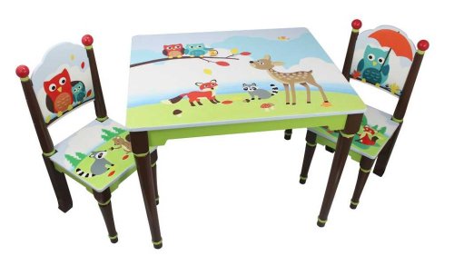 Krásny drevený stolček, "Kúzelný les" bude ozdúbou každej detskej izbičky, najmä ak je zladený nábytom s podobným motívom. Je to miesto na vzdelávacie a zábavné aktivity vašich detí. Ide o kvalitné prevedenie stolčeka s vysokou odolnosťou a protišmykovým povrchom, ktorý sa ľahko čistí. Práve vďaka pevnej štruktúre sú MDF dosky plnohodnotnou náhradou masívneho dreva. Môžete tak vytvoriť rozprávkovú izbičku s lesnými zvieratkami, ktoré sú ručne maľované ekologickými a netoxickými farbami na vodnej báze . Hlavné vlastnosti: ručne vyrezávaný a ručne maľovaný designstabilná a bezpečná konštrukcia - materiál MDFnevyžaduje montáž - už zostavenéprotišmykový povrchcertifikovanévodné od 3 rokov
