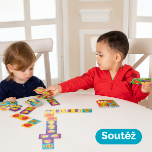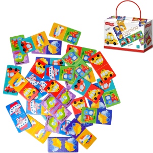 Far Far Land Domino s obrázkami doprava. Balenie obsahuje 28 kariet. Hra pre 2-5 hráčov. Pri hre 2 hráčov každý hráč dostane 7 kariet. Pri hre viacerých hráčov každý dostane 5 kariet. Zostávajúce karty sú v "banku." Hráč, ktorý má "dvojitú" kartu (kartu s totožnými obrázkami), hrá prvú.Ak žiadny z hráčov nemá dvojitú kartu, každý hráč si vezme jednu kartu z banku. Ak má viac hráčov dvojitú kartu, začína ten mladší.Pre rozohranie prvého ťahu si však môžete vymyslieť svoje vlastné pravidlá.Hráči sa striedajú a jeden za druhým prikladajú karty zo svojej ruky ku kartám na hracej ploche so zhodným obrázkom.Ak hráč nemá zhodný obrázok, musí si vziať kartu z banku. Hráč, ktorý položí svoju poslednú kartu na hraciu plochu, vyhráva Ak všetci hráči majú v ruke karty, ale nie je možné hrať ďalej, hra je ukončená "blokom" a vyhráva hráč, ktorý má v ruke najmenšie množstvo kariet.