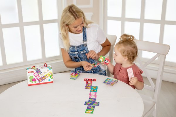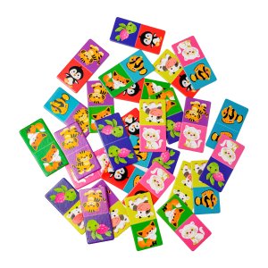 Far Far Land Domino s obrázkami zvieratka. Balenie obsahuje 28 kariet. Hra pre 2-5 hráčov. Pri hre 2 hráčov každý hráč dostane 7 kariet. Pri hre viacerých hráčov každý dostane 5 kariet. Zostávajúce karty sú v "banku." Hráč, ktorý má "dvojitú" kartu (kartu s totožnými obrázkami), hrá prvú.Ak žiadny z hráčov nemá dvojitú kartu, každý hráč si vezme jednu kartu z banku. Ak má viac hráčov dvojitú kartu, začína ten mladší.Pre rozohranie prvého ťahu si však môžete vymyslieť svoje vlastné pravidlá.Hráči sa striedajú a jeden za druhým prikladajú karty zo svojej ruky ku kartám na hracej ploche so zhodným obrázkom.Ak hráč nemá zhodný obrázok, musí si vziať kartu z banku. Hráč, ktorý položí svoju poslednú kartu na hraciu plochu, vyhráva Ak všetci hráči majú v ruke karty, ale nie je možné hrať ďalej, hra je ukončená "blokom" a vyhráva hráč, ktorý má v ruke najmenšie množstvo kariet.
