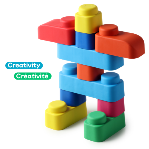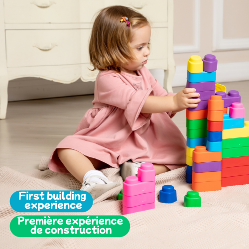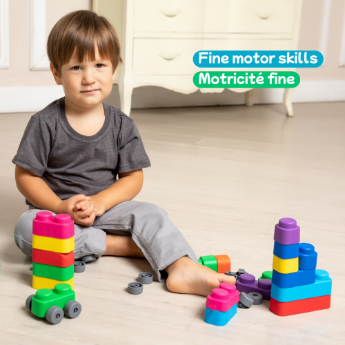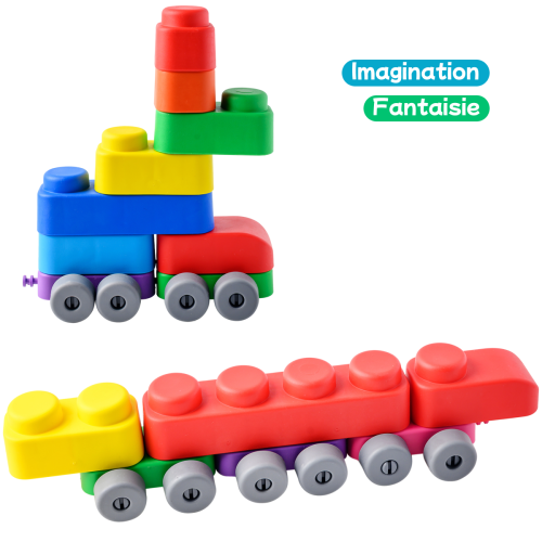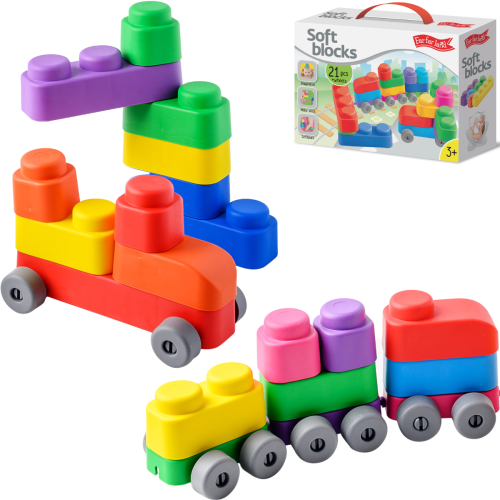 Far Far Land Stavebnica mäkká. Všetky bloky sú vyrobené z mäkkého bezpečného materiálu. Balenie obsahuje 21 blokov a 16 koliesok.
