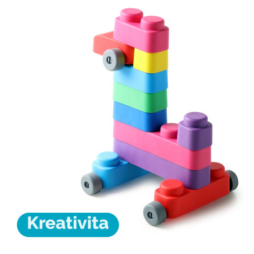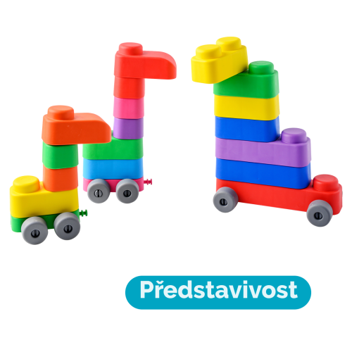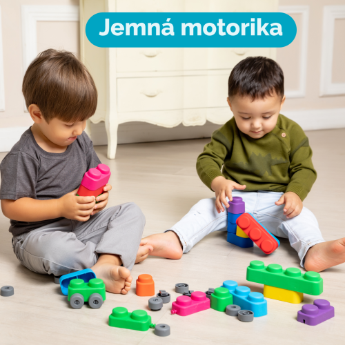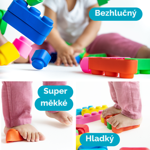 Far Far Land Stavebnica mäkká. Všetky bloky sú vyrobené z mäkkého bezpečného materiálu. Balenie obsahuje 15 blokov a 12 koliesok.