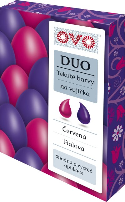 Tekutá farba na veľkonočné vajíčka. V balení je červená a fialová farba, každá vo vrecúšku po 20 ml.