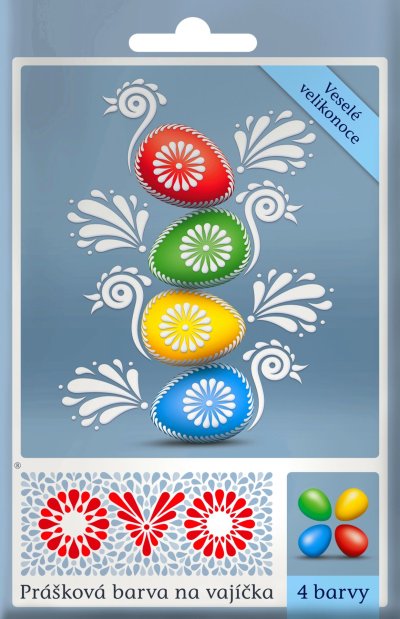 Prášková farba umožňuje jednoduchú a rýchlu aplikáciu výrazných farieb. Určené na farbenie veľkonočných vajec. Farba: mix 4 farieb.