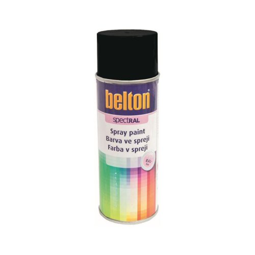 Rýchloschnúca univerzálna vnútrokombinačná farba v spreji BELTON RAL 9005PL s vysokou krycou schopnosťou a dobrou odolnosťou voči chemikáliám.
