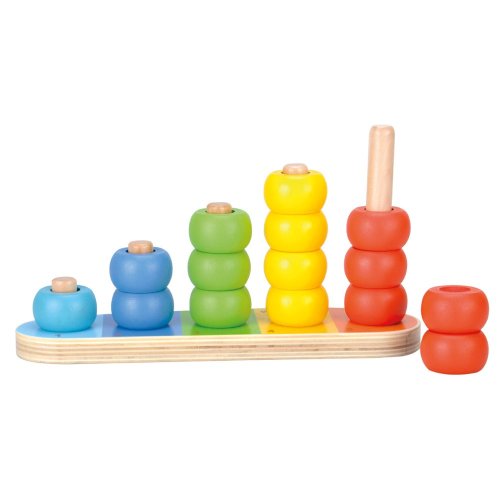S pestrofarebnými krúžkami sa Vaše dieťa naučí hravo počítať. Rozpoznávaním farieb a nasadzovaním krúžkov môže zároveň rozvíjať logiku aj jemnú motoriku. Hračka farbami prežiari každú detskú izbu či stôl. Je robustná, vyrobená zo silnej preglejky a masívneho dreva. Hlavné vlastnosti: základňa a 15 krúžkov robustné drevené prevedenie