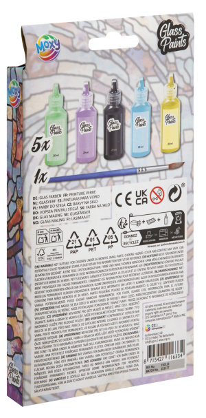 Kreatívna sada farieb na sklo pre jednoduché a zábavné maľovanie na hladké povrchy, ako je sklo, porcelán, keramika či plexisklo. Ideálna pre deti i dospelých, ktorí radi tvoria originálne dekorácie. fľaštičiek farieb na sklo (každá 20 ml), štetec na nanášanie farieb. efekt.Vhodné pre výtvarné tvorenie, zdobenie pohárov, vázičiek, svietnikov alebo okien.