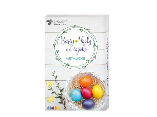 Metalické farby na vajíčkaVytvorte si veľkonočné vajíčka v krásnych metalických farbách! Obsah balenia: 5 gélových farieb (červená, modrá, žltá, oranžová, fialová) Návod: Vajcia uvarte v osolenej vode. Farby pomocou nožníc oddeľte. Fľaštičky s farbivom vložte do pohára s teplou vodou kým nebudú mierne tekuté a následne dôkladne pretrepte. Pri požadovanej farbe odstrihnite špičku a dajte späť do pohára s teplou vodou . Nasaďte si rukavice . Kvapnite do dlaní 6-7 kvapiek požadovanej farby. Vložte teplé vajcia do dlane a odovzdávajte si ho z jednej dlane do druhej, kým nebude zafarbené podľa vašich predstáv . Pred farbením ďalšieho vajca pridajte 3 kvapky farby do dlane. Jedna tuba nafarbí 4 – 5 vajíčok.