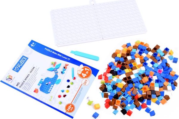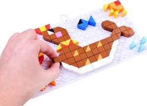 Kreatívna sada na vytváranie farebných obrázkov vlastnými rukami. Súprava sa skladá z plastových kociek, ktoré sa umiestňujú na hraciu plochu. Kocky by mali byť pritisnuté na dosku tak, aby tvorili obrázok. Môžete reprodukovať obrázky podľa obrázkového návodu alebo si vymyslieť vlastné. Sada obsahuje: - 2 podložky na vytvorenie dosky - viac ako 248 farebných kociek - špachtľu na vylupovanie - držiak na zavesenie obrázku - brožúra s nápadmi Rozmery: - skladacia podložka o celkovom rozmere 23 x 12 cm - kocky 1,1 x 1,1 x 1,1 cm Táto hračka rozvíja detské - zručnosti tvorivého myslenia - rozpoznávanie farieb - kombinovanie farieb - manuálne zručnosti