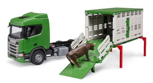 Pohodlné a robustné vozidlá BRUDER predstavujú vo svojej ponuke rad Scania Super R. Séria R sa vyznačuje jedinečnou kombináciou pohodlia a odolnosti. S novými modelmi od firmy BRUDER si deti môžu realisticky prežiť rôzne situácie. Nákladné vozidlo na prepravu zvierat obsahuje všetko, čo je dnes potrebné na prepravu vhodnú pre daný druh zvieraťa. Jednoduchá nakládka a vykládku vďaka skladacej rampe s výklopnými vrátami. Skladacie vnútorné deliace brány na splnenie priestorových požiadaviek rôznych druhov/plemien, 2 napájačky na zavesenie na bočné steny, výklopné podporné nohy, kontajner je možné rozložiť na všetky jednotlivé časti. Súčasťou dodávky Scania je aj figúrka kravy. Nová kabína sa vyznačuje typickým dynamickým dizajnom vozidiel Scania. Vozidlo má sklopné vonkajšie spätné zrkadlá a otváracie dvere. Kompatibilný s figúrkami Bworld. Vyrobené z vysoko kvalitných plastov, ako je ABS. Mierka 1:16. Možno použiť na hru vo vnútri aj vonku. Rozmery auta: 26,5 x 18,5 x 53,5 cm. Rozmery balenia: 28,5 x 19,5 x 58 cm. Vek: 4+