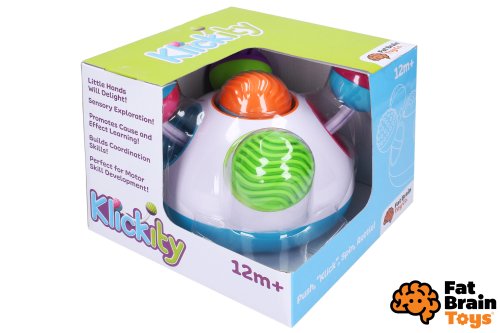 Hračka Klickity je zo spodnej strany zabezpečená gumovými podložkami proti posúvaniu a skĺznutiu.