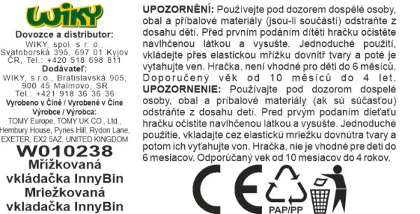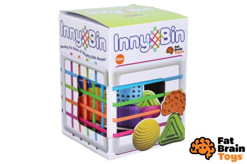 InnyBin mriežkovaná vkladačka. Rám kocky je z plastu. Mriežku tvoria elastické povrázky. Rôzne tvarované kocky z mäkkého materiálu je možné jednoducho prestrkávať cez mriežku.