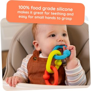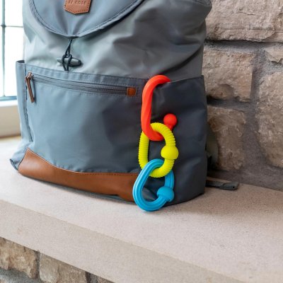 Fat Brain PLIP GRIPS spojovacie krúžky. Veľkosť 8 cm. Vyrobené z food grade silikónu. Obsahuje 3 krúžky. S rôznou textúrou, vhodné na hryzenie.