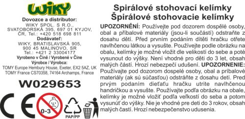 Fat Brain Špirálové stohovacie kelímky Spiroku. Spiroku sa skladá z 9 dielov. Keď sú všetky diely vložené do seba, je možné ich vytiahnuť až do výšky 55 cm. Je možné hrať sa aj s jednotlivými téglikami.