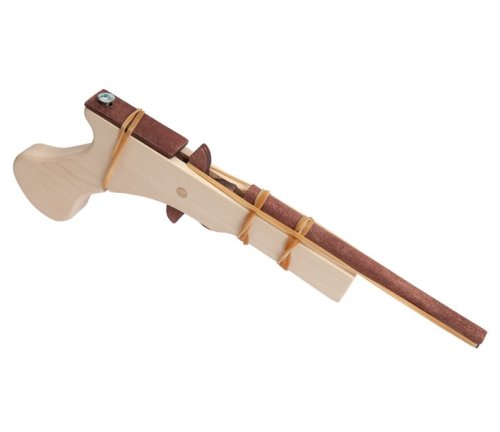 Predstavujeme Vám drevenú pištoľ, ktorá nemôže chýbať žiadnemu pištoľníkovi v izbičke. Zbraň nabijete pomocou gumičky a potom už záleží na muške, či zasiahnete ciele . Hlavné vlastnosti: vhodné od 6 rokov