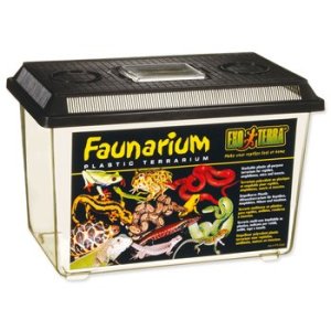 Prenosný priehľadný plastový box pre terárijné zvieratá.