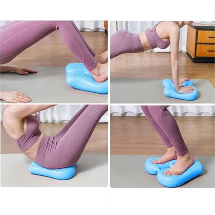 Nafukovací stepper Merco Feet je jednoduchá pomôcka, s ktorou precvičíte a posilníte lýtka, stehná aj zadok, stimuluje stabilizačné svalstvo oblasti trupu a vedie k spevneniu celého tela. Drepy, kľučky, rovnováha v sede, výpady, pilates, joga a ďalšie cvičenia, ktoré účinne zlepšuje základnú silu vášho tela – pre to všetko je táto balančná podložka určená. Cvičte v pohodlí domova s balančnou podložkou Merco Feet. Otvor na nafúknutie nájdete z boku podložky. Podložku neprefukujte. Na nafúknutie či vyfúknutie používajte iba navlhčenú ihlu. - materiál: PVC - rozmery: 33 x 35 x 8 cm (dĺžka x šírka x výška) - hmotnosť: cca 990 g - max. nosnosť: do 100 kg - súčasťou ručná pumpička s ihlou
