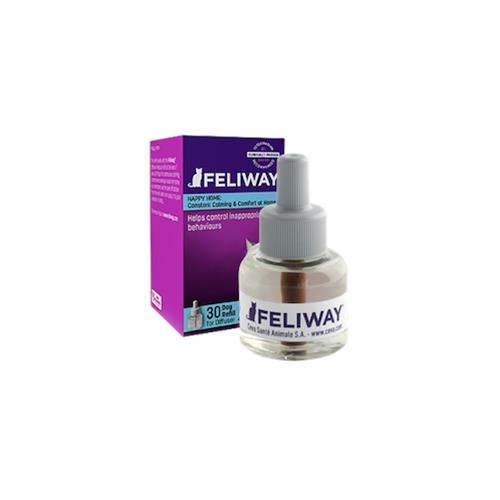 Difúzer FELIWAY ® Classic pomáha utíšiť nepokojné mačky (v domácnosti alebo na cestách) a zabrániť nežiaducemu správaniu, ako je značkovanie močom, škrabanie alebo ukrývanie. Docieľuje to tým, že do okolitého prostredia nepretržite rozptyľuje kópiu upokojujúceho tvárového feromónu, ktorým mačky označujú svoje prostredie ako bezpečné a domáce. Jeden difuzér pokryje priestor s rozlohou až 70 m2 . Zloženie: syntetická forma mačacieho tvárového feromónu frakcie F3 (2%), excipient qs (100 g). Doba účinnosti: 1 náplň/až 30 dní Použitie: Odstráňte uzáver nádobky, naskrutkujte difuzér na nádobku a jemne utiahnite. Zasuňte difuzér do elektrickej zásuvky tak, aby knôt smeroval nahor, a nechajte ho stále zapojený. Nezapájajte difuzér do zásuviek pod poličkami, za dverami, závesmi a nábytkom – obmedzený prístup vzduchu znižuje jeho účinnosť. Pre optimálny účinok difuzér každý mesiac skontrolujte a raz za šesť mesiacov nahraďte novým. Upozornenie: Difúzer FELIWAY ® je určený na použitie v interiéri. Prípravok nemá sedatívne účinky, a ak je používaný v súlade s odporúčaniami, feromóny v ňom obsiahnuté sú bezpečné pre zvieratá aj ľudí. Určené na použitie iba v rozmedzí napätia 220–230 V. Nikdy nepoužívajte s adaptérom alebo konvertorom napätia. Náplň FELIWAY ® môže byť použitá len s difuzérom FELIWAY ® .