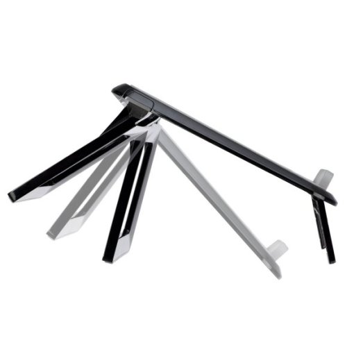 Bielo-šedo farebný stojan je určený pre notebooky do veľkosti 17" a umožňuje nastavenie uhla a výšky v 7 pozíciách.