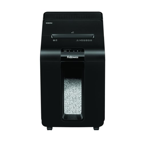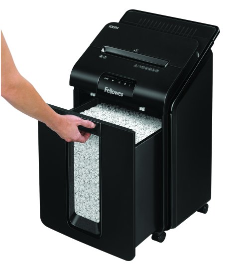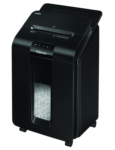 Vstupný model z radu automatických skartovačov značky Fellowes. Len nalož, zapni a bež. Automatický skartovací stroj Vám šetrí čas strávený vkladaním skartovaných papierov. Zariadenie je schopné na jeden pracovný cyklus pri automatickom podávaní skartovať až 100 listov 70g papiera v krížovom mikroreze rezu 4×10 mm. Skartovač je tiež vybavený vstupnou štrbinou na ručné podanie až 10 listov papiera. Objem odpadového koša 23 litrov. Rezací mechanizmus spracuje pri manuálnom podávaní zošívačkou zošité papiere (až 20 zošitých listov) a kreditné karty. Jednoduchá manipulácia so strojom vďaka pojazdovým kolieskam.