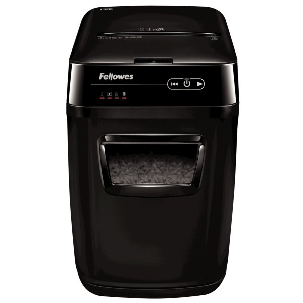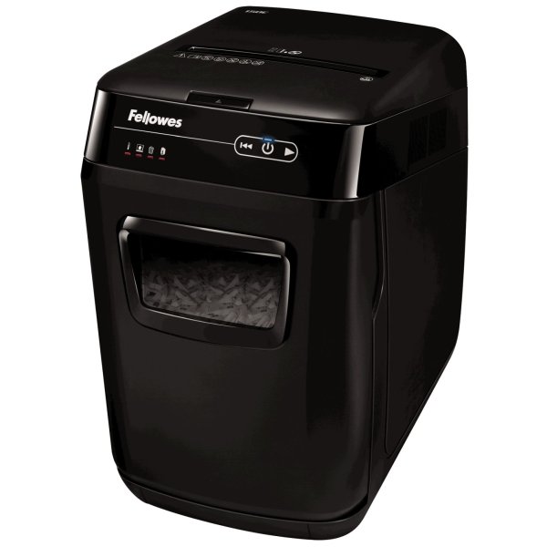Skartovanie nikdy nebolo jednoduchšie. Revolučná novinka značky Fellowes, Vás o tom presvedčí. Len nalož, zapni a bež. Tento automatický skartovací stroj Vám umožní venovať sa prospešnejším kancelárskym činnostiam, než je opakované postávanie u bežného skartovača. Zariadenie je schopné na jeden pracovný cyklus pri automatickom podávaní skartovať až 150 listov 70g papiera v krížovom reze 4×38 mm. Skartovač je vybavený vstupnou štrbinou na ručné podanie až 8 listov papiera. Výkonný rezací mechanizmus spracuje pri automatickom podávaní zošívačkou zošité papiere (až 20 sponkou zošitých listov 70g papiera), sponky (až 20 spojených listov). Pri manuálnom podávaní aj kreditné karty.