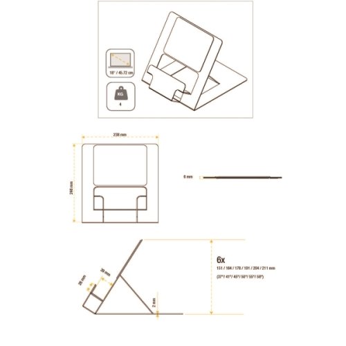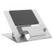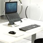 Podstavec pre notebooky s uhlopriečkou až 18" umožňuje nastavenie uhla sklonu a výšky v šiestich stupňoch. Podstavec tak pomáha redukovať napätie chrbta a udržiavať správne držanie tela. Otvor v podstavci zaistí dostatočné prúdenie vzduchu a priestor pre správu kabeláže. Vďaka minimalistickému dizajnu sa hodí do každej kancelárie.