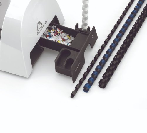 Viazací stroj na dierovanie až 12 listov naraz. Špeciálny zásobník na chrbty s patentovaným systémom merania hrúbky dokumentov a výberu správneho chrbta. Vďaka dvom prednastaveným pozíciám pre A4 a A5 je obsluha viazača rýchla a jednoduchá.
