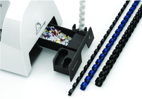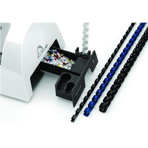 Oddelená dierovacia a viazacia páka na priebežné vkladanie dierovaných listov do plastového chrbta výrazne zefektívňuje prácu. Vďaka dlhšej dierovacej páke je potrebné na dierovanie minimum sily. Stroj je vybavený integrovanou mierkou pre správnu voľbu priemeru chrbta.