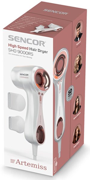 Fén na vlasy SHD 9000RS je vybavený moderným vysokorýchlostným BLDC motorom, ktorý sa pýši tichým chodom, dlhou životnosťou a výkonom až 90 000 otáčok za minútu. Tento motor vytvára silný prúd vzduchu s rýchlosťou až 75 km/h, vďaka čomu výrazne skracuje dobu sušenia vlasov. Prístroj ponúka tri úrovne prúdenia vzduchu - jemné, stredné a intenzívne - a štyri nastavenia teploty, vrátane funkcie studeného vzduchu pre záverečné zafixovanie účesu. Silná ionizácia napomáha k dosiahnutiu hebkých, hladkých a lesklých vlasov bez krepovatenia. Súčasťou balenia sú dva magnetické stylingové nástavce pre pohodlnú manipuláciu a presné tvarovanie vlasov. Odnímateľný filter uľahčuje údržbu a čistenie prístroja. S príkonom 900 W, teplotným rozsahom 20-56 ° C a nízkou hlučnosťou 75 dB predstavuje tento fén kompaktné a efektívne riešenie pre každodennú úpravu vlasov.