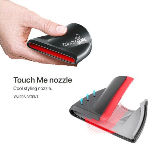 2400W profesionálny fén s výkonným profesionálnym AC motor s dlhou životnosťou až 2000 hodín. Ionizačné funkcieNegatívne nabité ióny sú častice, ktoré prečisťujú vzduch. V prírode sa vyskytujú vo veľkom množstve po búrke, kedy je vzduch čistejší a revitalizujúci. Fény s ionizačnou funkciou majú generátor, ktorý produkuje milióny očisťujúcich negatívnych iónov čo spôsobuje, že vlasy zostávajú hydratované. Hydratácia zabraňuje krepateniu vlasov, má regeneračné účinky, zanecháva vlasy jemné, lesklé, ľahko rozčesateľné a zväčšuje ich objem . Technológia Smart Airflow Táto technológia optimalizuje prúdenie vzduchu cez fén od zadného filtra, kde je vzduch nasávaný až po predný otvor, kde vzduch vychádza. Smart Airflow technológia umožňuje fénom dosahovať vynikajúce výkonnostné vlastnosti – premena energie (W), prúdenie vzduchu (m3/h), tlak vzduch (Pa), rýchlosť vzduchu (km/h) a nízka hlučnosť (dB(A)). Kombinácia týchto vlastností je unikátna pre súčasný trh . Sanify systém Zlepšuje kvalitu prúdiaceho vzduchu, má antibakteriálne účinky. Potvrdené nezávislými laboratóriami. So Sanify systémom sa môžete cítiť bezpečne a využívať značné benefity. Styling v uzavretej miestnosti je porovnateľný s čerstvým vzduchom v prírode. Backstop systémVnútri fénu zabraňuje vlasom preniknúť do ventilačných komponentov a zablokovaniu motora. Ochrana motora je zásadná pre dlhšiu životnosť fénu. Backstop systém bol vyvinutý vo Valere, patentovaný a vyrobený vo Švajčiarsku . Rotocord Patentovaný otočný systém Rotocord je integrovaný do rukoväte. Fén môžete akokoľvek otáčať a Rotocord zabráni akémukoľvek zamotaniu šnúr ry.Touch me coolUltra úzka vzduchová tryska, ktorá zostane vďaka špeciálnemu dvojvrstvovému systému chladná aj počas používania fénu a je možné s ňou ľahko manipulovať.